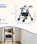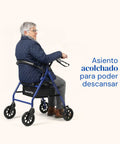 Andador Lambda | Cuatro ruedas, asiento y respaldo, andador para ancianos (Azul)